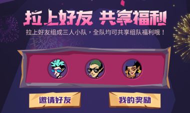 三人小组再度出击!和你一起下洞的小伙伴都在哪?快拉上他们一起,组成三人小队,即可解锁所有奖励,而且所有人都可领取哦。