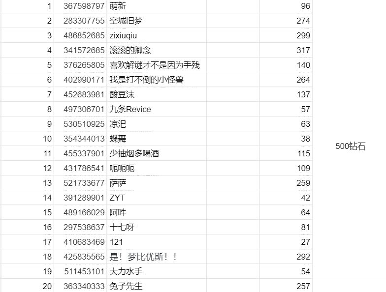 3、随机抽选20位制作人送上钻石×500 ~
