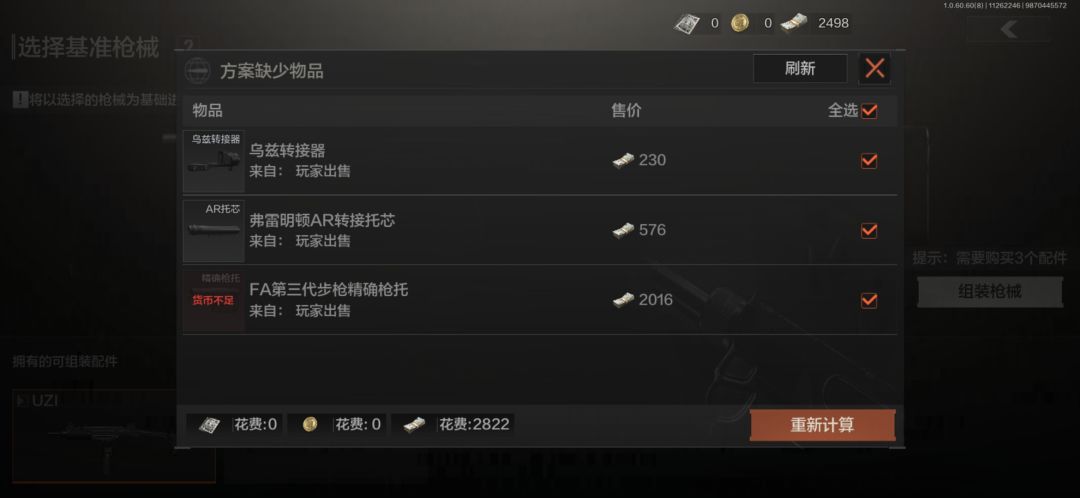 枪托换成了乌兹转换器,才能配后面两个枪托。
