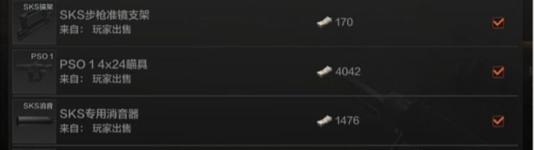 身上有莫辛纳这把枪,那么我们只需要买枪口、基座还有瞄准镜的武器配件就行了。