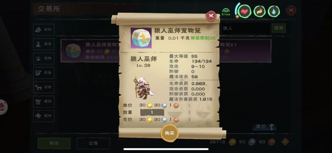 今天无聊没事干,然后逛交易所的时候碰见一只极品狼人巫师,然后果断买下来安排一下了。。结果一合又是变异,我的天,我还以为又翻车了,然后打开一看我去2.0,突然感觉我合宠物又行了。下面给大家看看截图