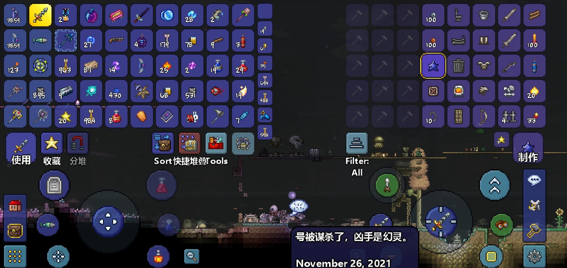 搞半天才发现,原来毁灭者是最弱的,拿他的神圣锭做了一个鞭子,我以为是,圣剑,给我整个整个鞭子,后悔死了,想再打一个诶,结果天亮了打不了,打一半血诶没了,还得再去找材料,多刷一刷毁灭者吧,把神圣套做完再打,掉了好多的力量之魂,不知道有啥用,好像可以合成巨兽鲨,但是我不想要巨兽鲨