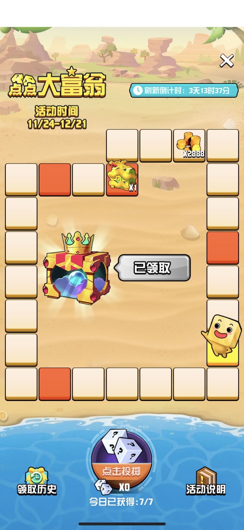 大富翁的箱子领不到。