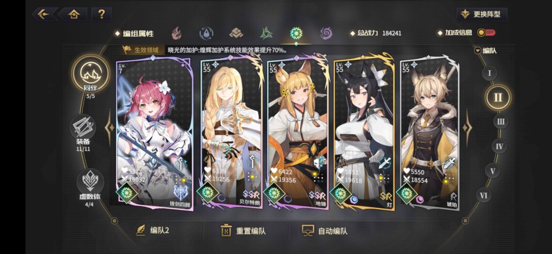 第二套基础阵容,泛用性强。在你主角奶妈还不给力的情况下能保证你不暴毙。