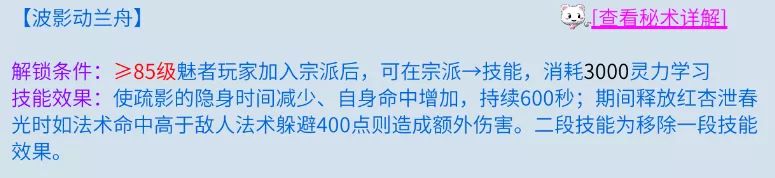 魅者的秘术【波影动兰舟】会降低隐身时间,但打方士等职业需要无限隐身,可以选择自己手动关闭秘术,灵活运用。打画魂时尽量不开秘术,因为没有把握的话容易现身。