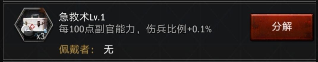 Ps:该技能需要手动释放;这个技能与其他科技和技能的伤兵转换率加成是不叠加的,当进行战斗时,系统会优先计算科技和技能的伤兵转换率进行伤兵转化,再去计算剩余的“死兵单位量“抢救技能的生效比例,进行伤兵转化。(一切以游戏内实际战报为准)