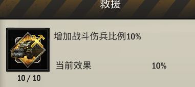 (该技能最高10级,可增加战斗伤兵转化比例10%)