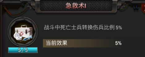 【发展】中的【急救术I】和【急救术II】每升1级增加1%的伤兵转换率