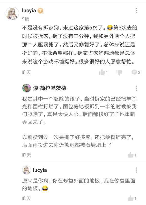 我觉得游戏中绝大多数人都是友善的,1人拆家10人修,当时就很感动。