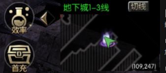 点击进去后可以选择去第几地下城,选择地下城1会传送到,传送到地下城后可以在地图最右上角选择切线,根据自己的需求切换到对应的线路,每一层地下城分别有3条线