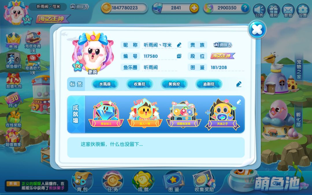 6.建议增加70级以后的福利,例如现有鱼缸 等级福利 盟鱼银行的奖励等。