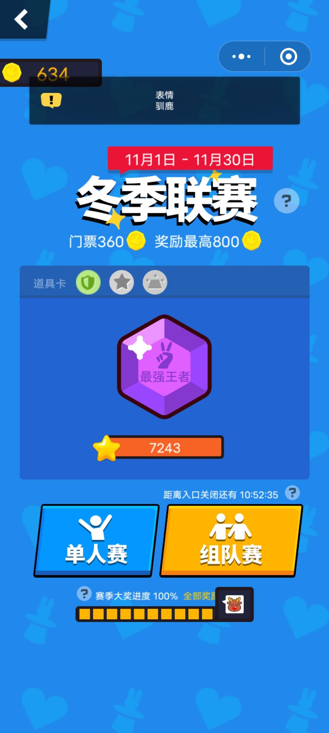 有了印花还不够,又去肝联赛,终于肝到了这个驯鹿表情包。