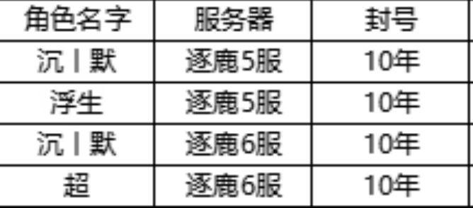 以下是本次违规使用第三方工具的用户名单,已做出相应封号处理: