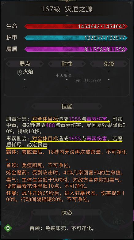 打法:直接按着打【灾厄之源】打,注意回复魔盾,如果吃了食物后,还是扛不住,可以先打后面的小关,拿到毒抗的医师之帽+医师手套后在来打