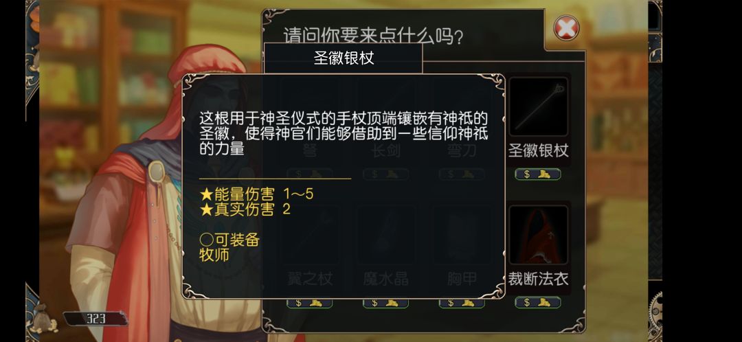 法杖比较便宜看到就买下来就行。法衣比较贵看个人情况来。城镇里买东西会比位面商人便宜一倍多。所以尽量城镇里买。当然也可以挖矿自己做。