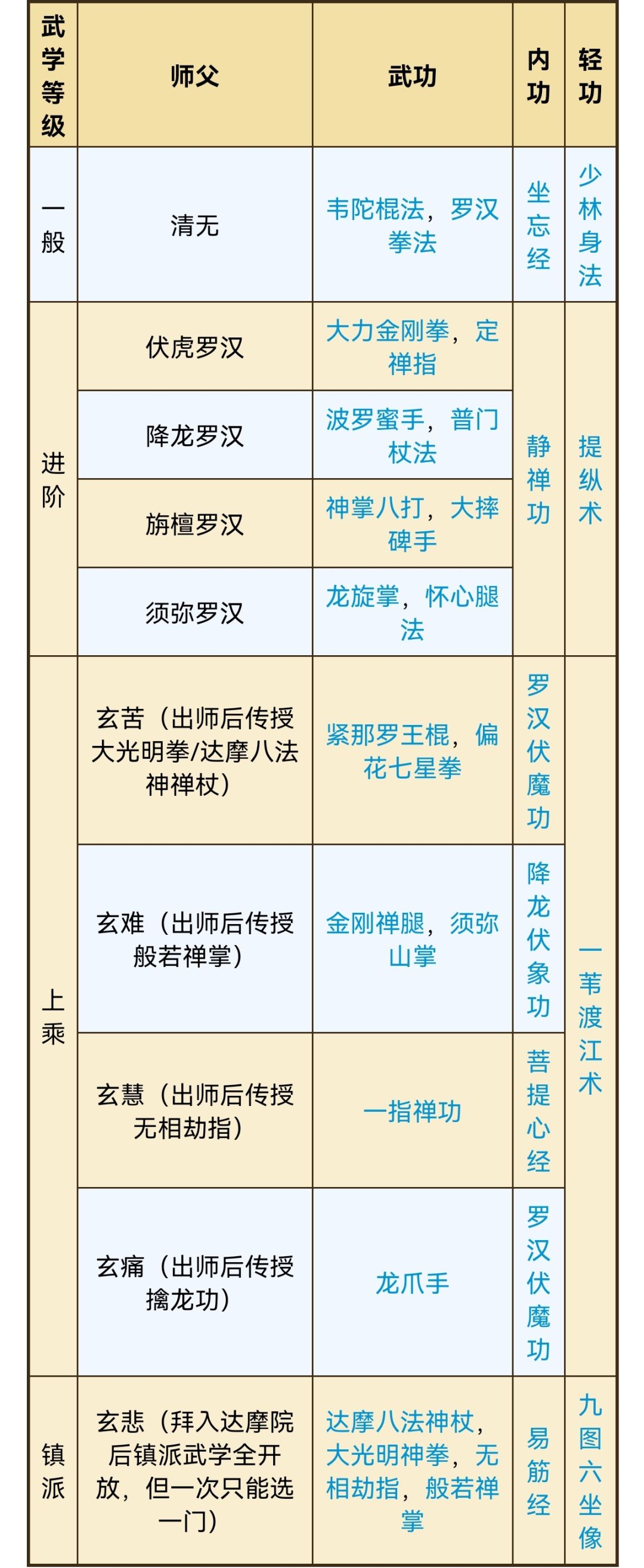 天下武功出少林,少林可以说是各个门派里秘籍最多的也是比较友好和好上手的门派。