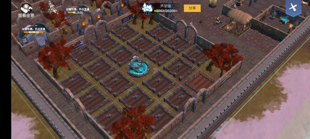 田地我的设想是爱心田 但是这个游戏里看起来不是很好看 要加装饰物我也不知道加啥 后面看到排行榜的大佬家 这个田地我直接爱了 好看又方便(他家中间放的是大风车 太太太好看了 但是我没有大风车555所以放了生命泉)