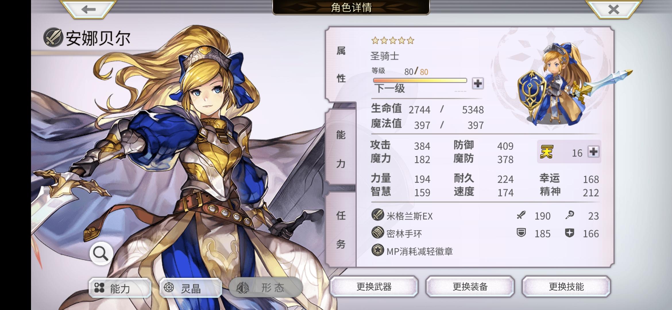 安娜,MP消耗减少,HP回复↗,MP回复↗(消耗减少没有也行,一般不会缺蓝,主要不要加速度的,安娜速度一个都不要加)