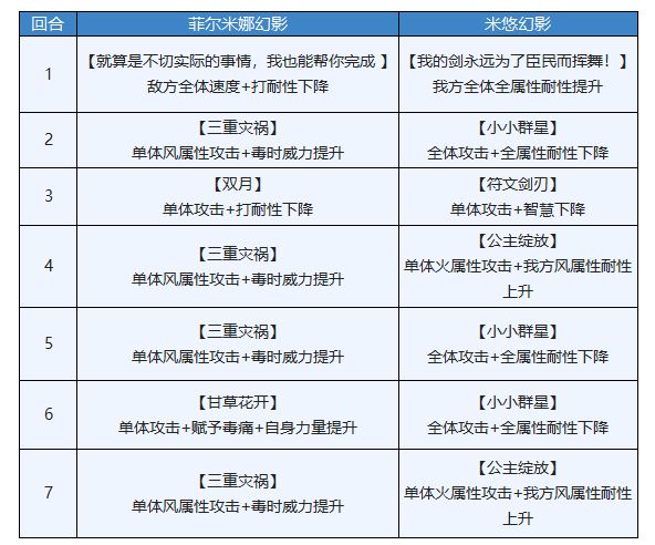 1、攻击型的菲尔米娜幻影+攻击型的米悠幻影非常麻烦,建议烈火阵或风王阵搭配对应的队伍快速击破。