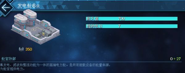 其中除火力发电舱外,其余舱室均可通过升级舱室来提升电量上限。