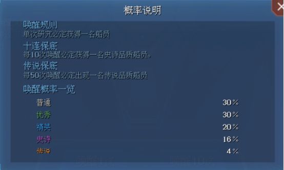 以下是招募的概率及规则说明。
