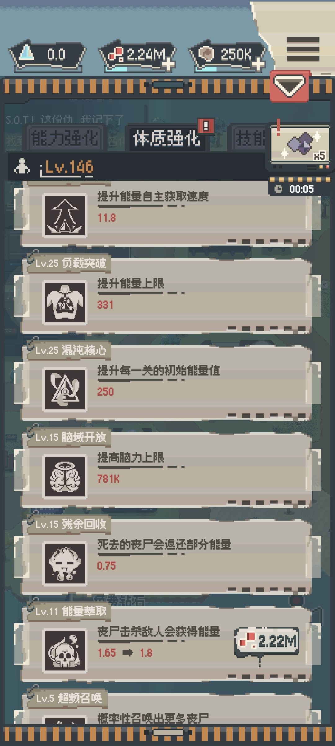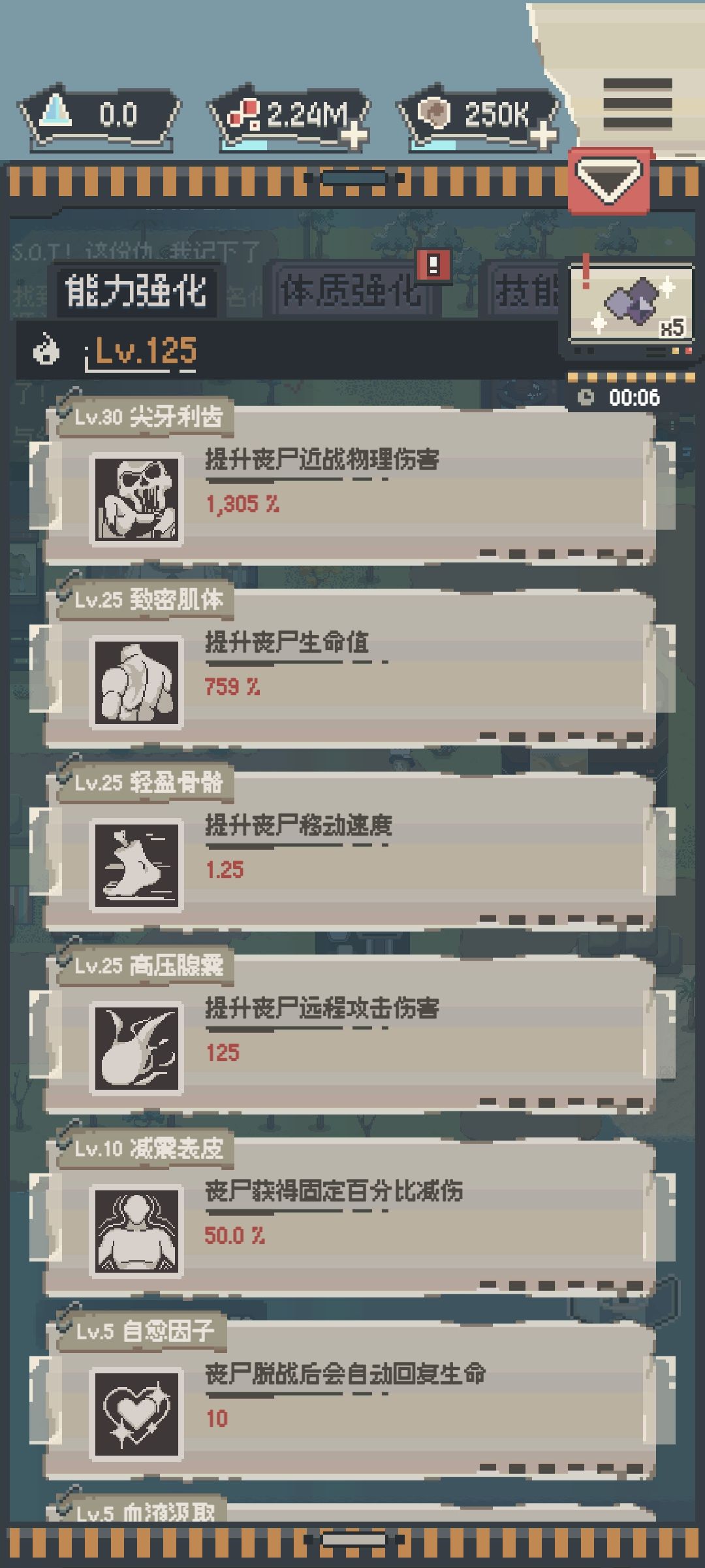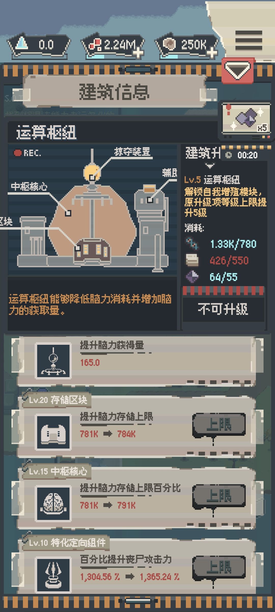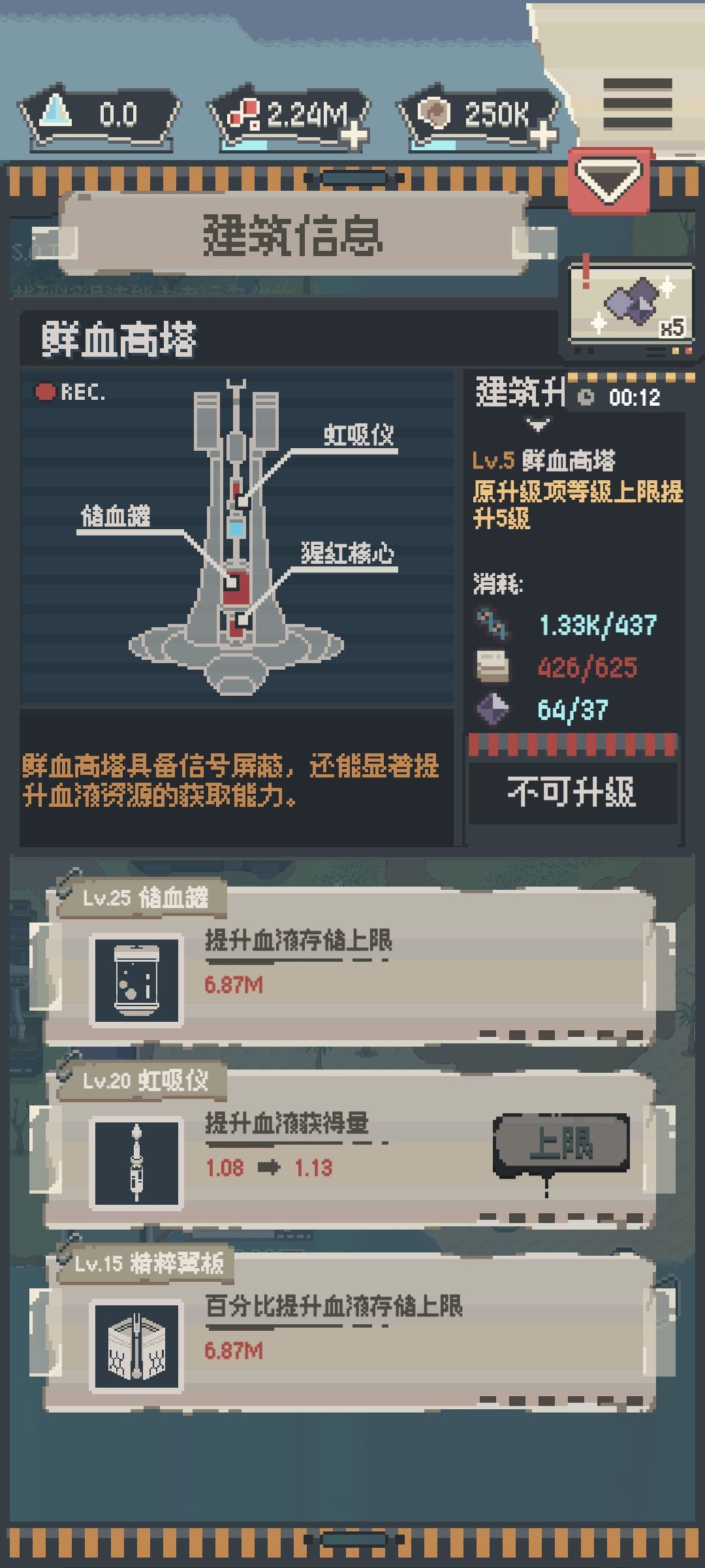 这是我玩了7天的成果,每天时间应该不超过20分钟。其实除了升级各个装置的虫子和箱子比较难攒外,脑子和血液其实很好打的。我们只需要打完第二章的最后一关,然后一直刷这关就行。因为这关在前期中期乃至于后期他通关时的杀人数都是比较多的。也就意味着在这关我们可以获得比其他关卡更多的血液和脑子。这样就可以更快的升级能力和各个装置的强化内容。打后面的关卡也更简单。