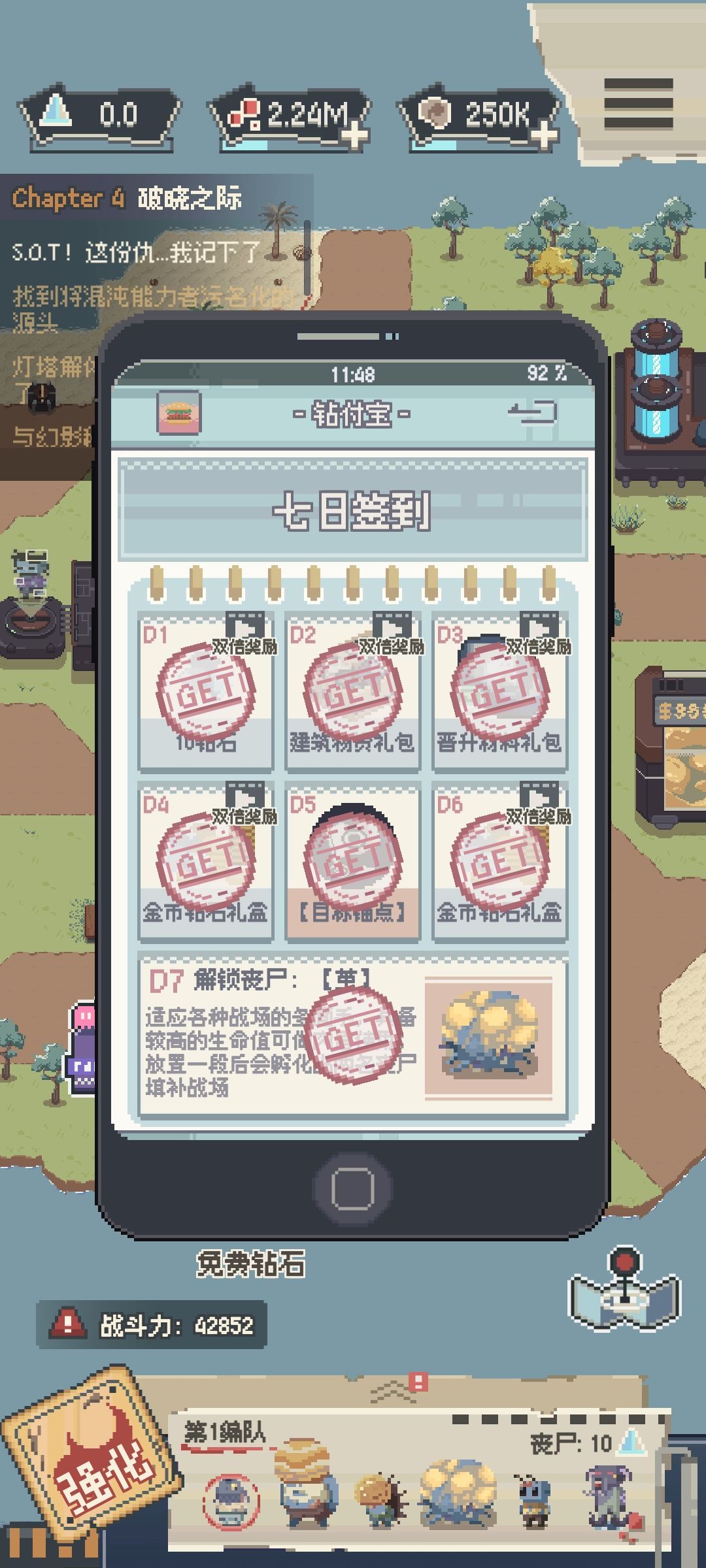 这是我的号,今天刚刚领完7天奖励。然后给大家看下我的资源和强化。