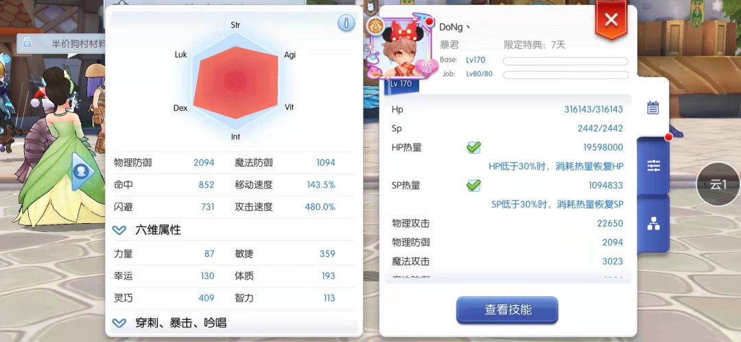 本人由于尾部使用美妙合奏,所以尽量在保证满敏捷和灵巧的前提下,把其他点到119,尽量触发更多的技能伤害。