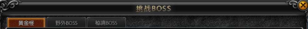我们可以在主界面的挑战首领中找到挑战BOSS界面,分别为黄金怪、野外BOSS、秘境BOSS