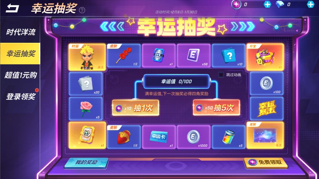 1、之后的幸运抽奖不会间断啦~会一直有新的时装、道具卡皮肤让大家抽哦!