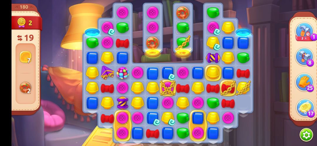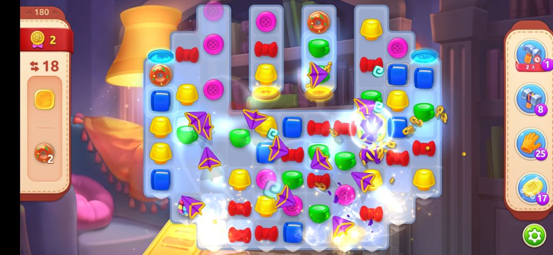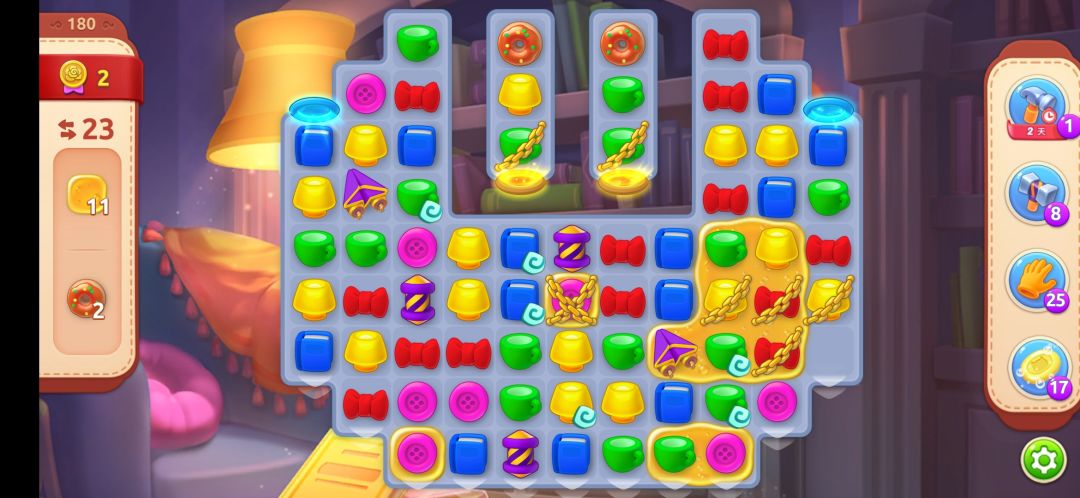 ❷先消除蜂蜜,对于甜甜圈的话,可以在收集完蜂蜜之后,再去看甜甜圈,因为在消除蜂蜜的时候,基本上全局已经进行了很多消除了,甜甜圈也是很好收集到的