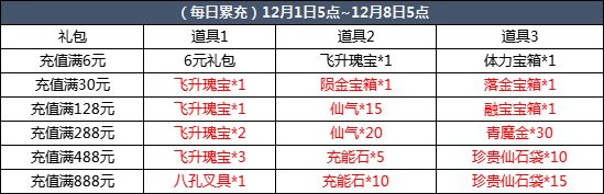 【活动简介】活动期间累计充值达到指定金额即可领取惊喜礼包!
