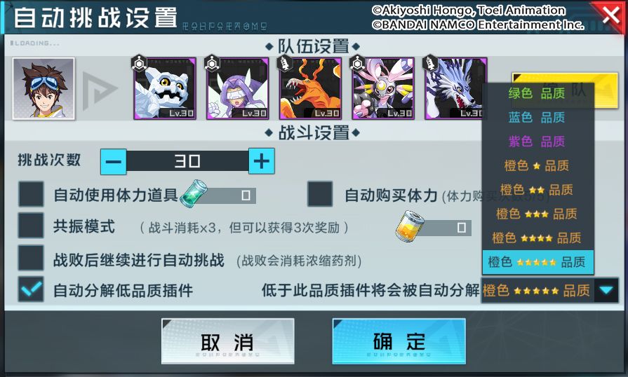 3、5星插件爆率提升,同时自动挑战新增自动分解5星橙色以下品质插件的设置,队长可以根据自己对插件星级的需求进行选择。