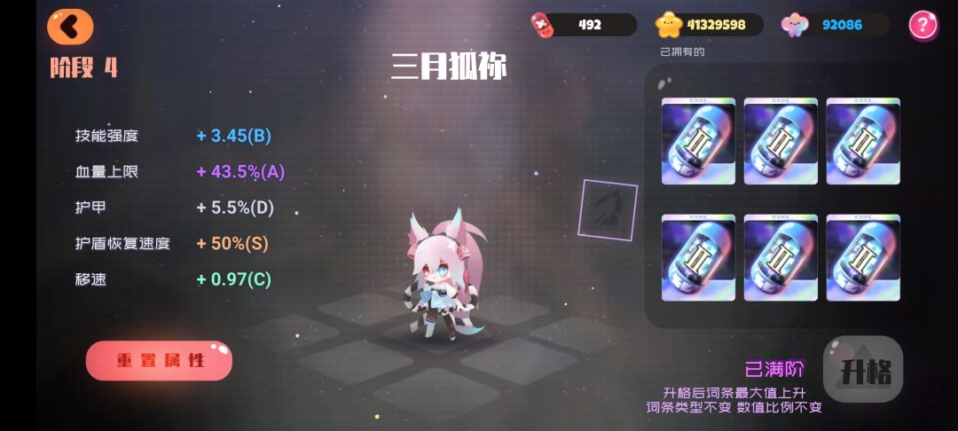 粉狐狸的升格词条数据,洗了,但没完全洗,但是升格比霜降高所以加的技强还是稍微高一点