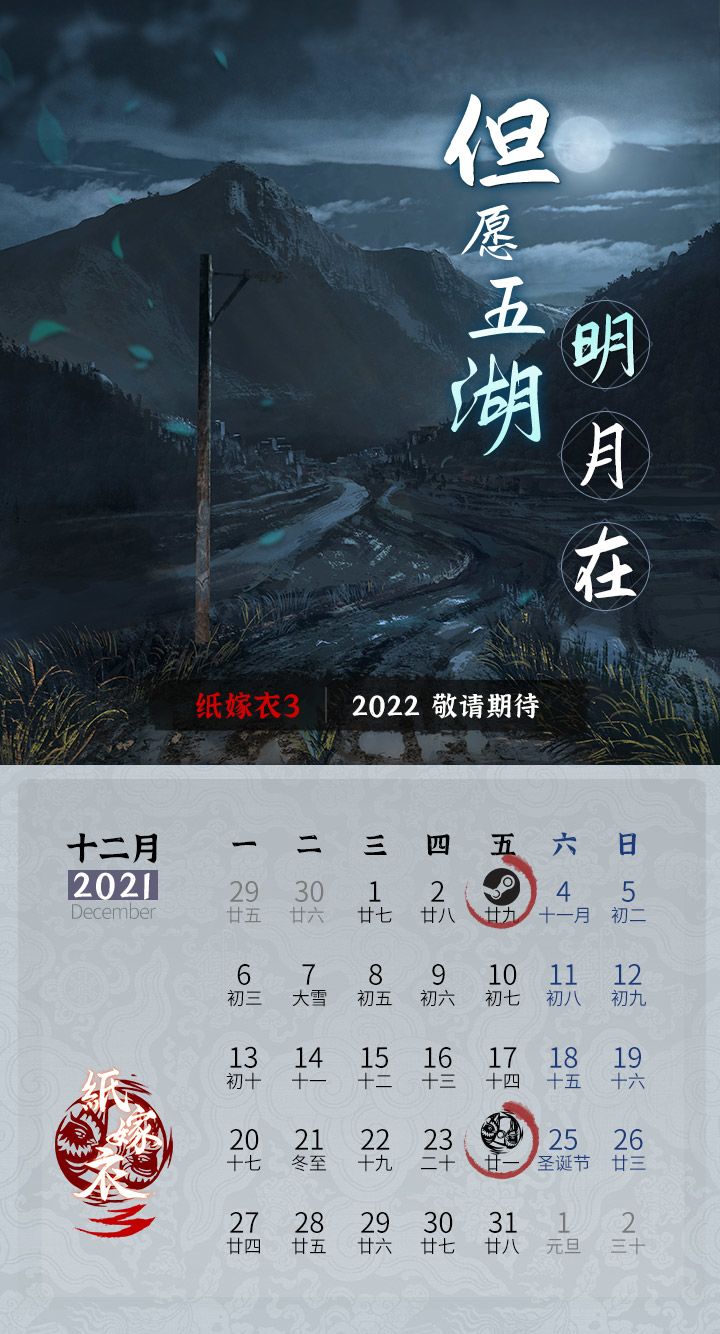 给小伙伴们带来纸嫁衣12月月历壁纸,跟阿纸一起坐等2022年纸3上线吧~