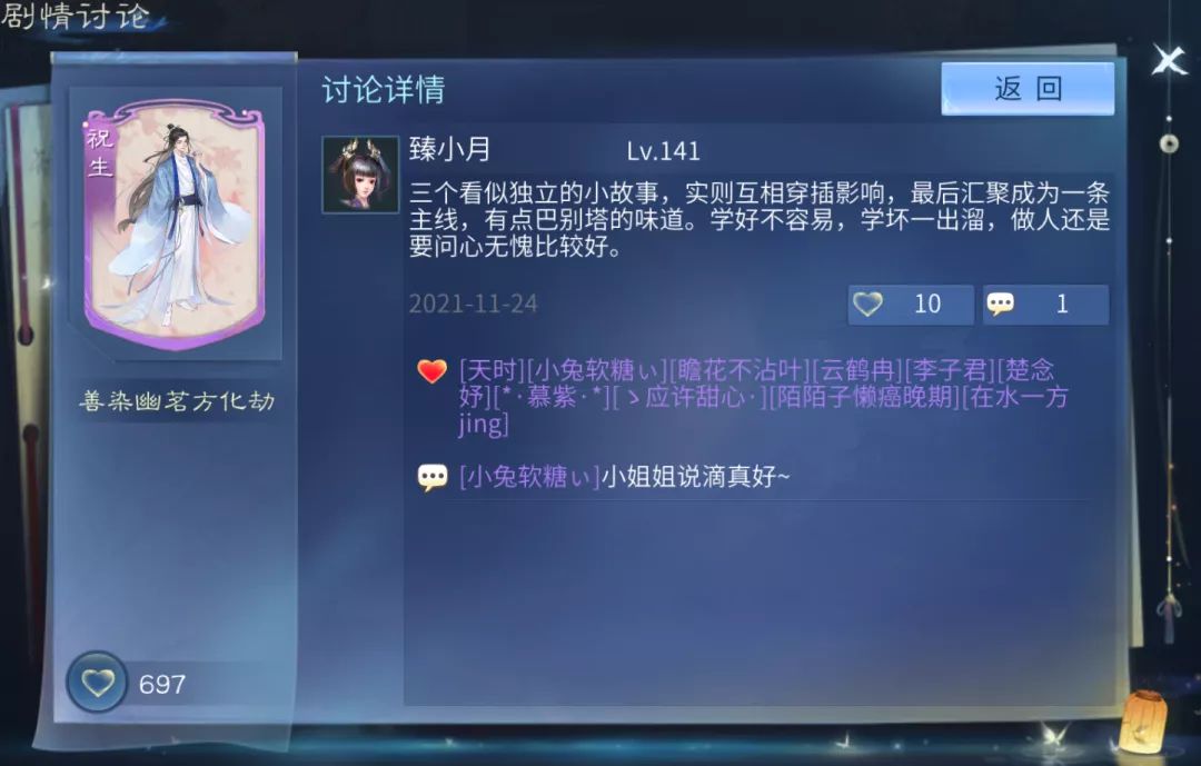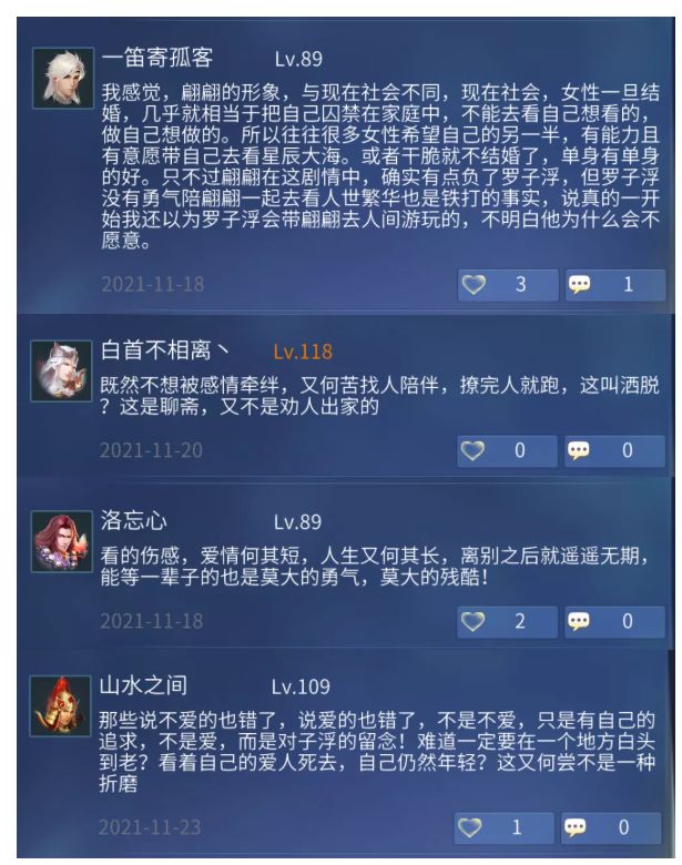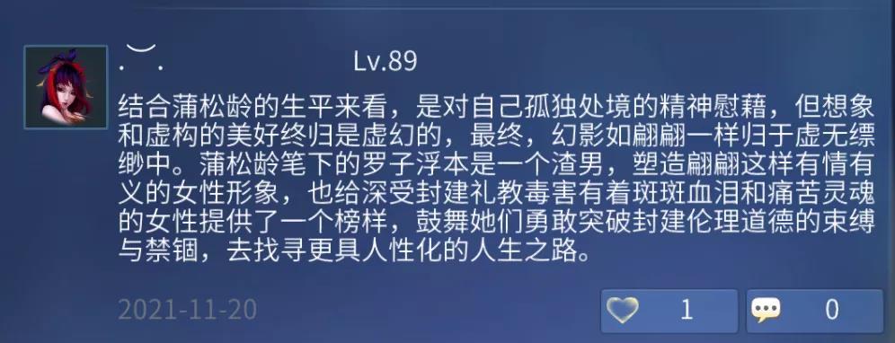 还有的人发出深深感慨。当然,在支线中塑造的翩翩和罗子浮都和《聊斋志异》的原著有所不同,是基于蒲松龄老师原著的再创作。菌菌也希望更多了解原著的小伙伴们能够参与到讨论中来!