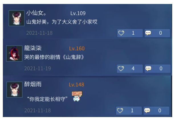 近期游戏内上线了妖鬼狐奇谈的讨论区功能,小伙伴们可以打开【左上角头像-角色成就-妖鬼狐】进入剧情评论区,和更多小伙伴一起畅聊剧情!