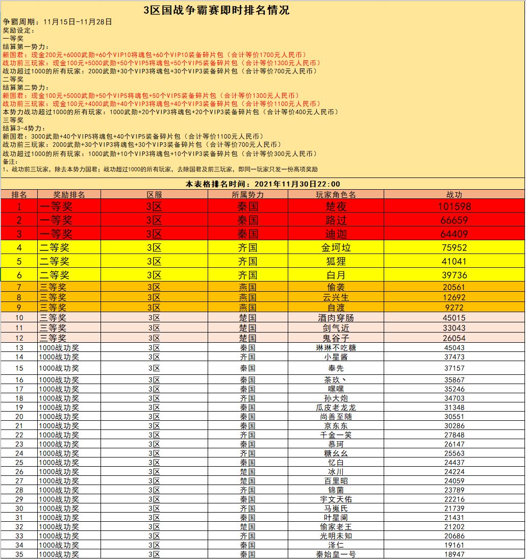 3区国战争霸赛即时战报(12月1日)