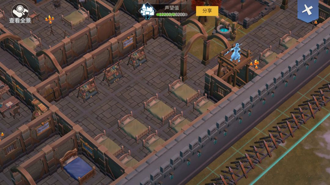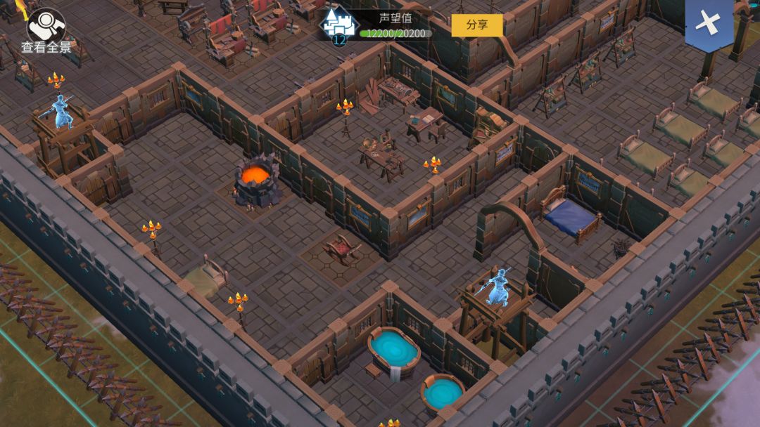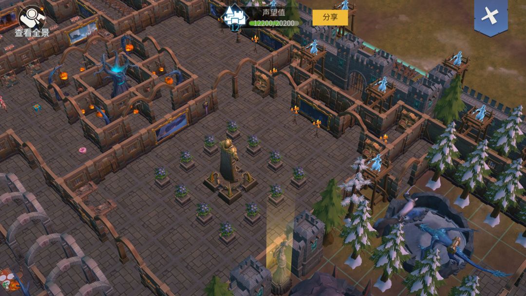 首先是侧门和储物的房间,侧门共有6个弓箭手,后续可能会更新到10个,因为十全十美才最好吗哈哈😃,不过抵御寒霜兵团是够了,储物房建中的大宝箱配合着画作也还不错。