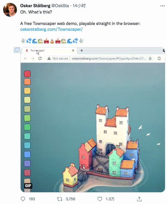 制作人Oskar Stålberg公开了《城镇叠叠乐》的试玩网页,点击即可玩到这款游戏的Demo,包括制造建筑、调整光影和画风等功能。还在苦苦等待的玩家可以来试试了:
