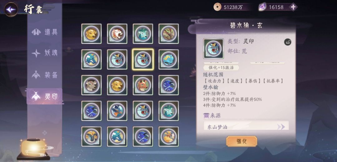 当某一个灵妖携带壁水㺄灵印,该灵妖受疗效果增加,而其他灵妖不受影响。