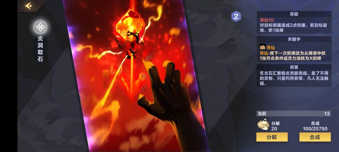 首先前期我们要保证龙女和后期的强力部署句芒尽快上手!如何保证呢?就靠这两张卡了,注意龙女可是神兽!所以直接猎猪找龙女,这里我带了两张,因为我这套里还带了一个神兽,就是孔雀天督,所以入手哪个都不亏!然后是炎洞取石这张卡,直接找句芒!有了他们在手就可以随便膨胀他们身材了!