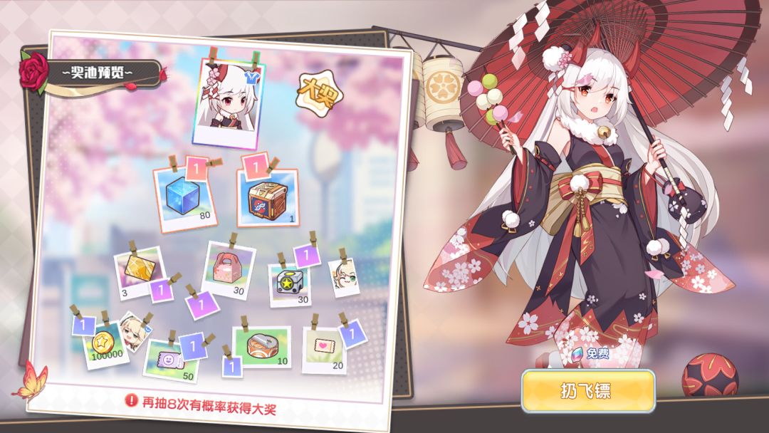 1. 指挥官可以使用钻石,向照片墙扔飞镖获取道具奖励。