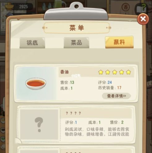 我抽到的是香油(目前只有一个),蘸料是每桌必点,按人头算,只有一个的话那现在就是强制消费时期,我立马就把香油升到满级了,成本1,收入13,净赚12,而且还是按人头算,美滋滋