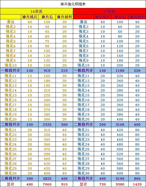 16、17资质神兵强化表