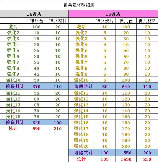 14、15资质神兵强化表