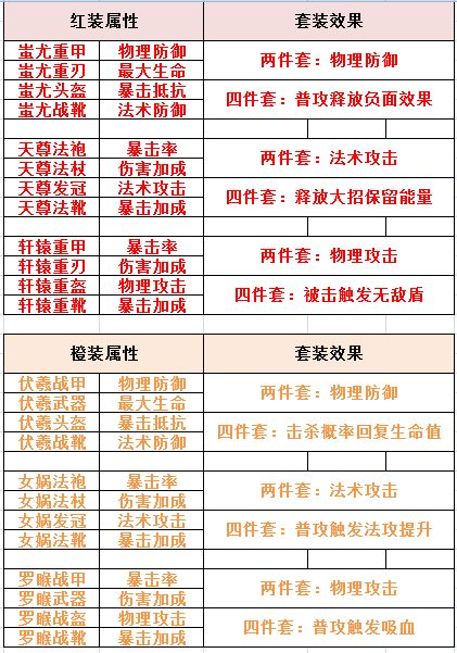 橙/红宝物属性及套装效果