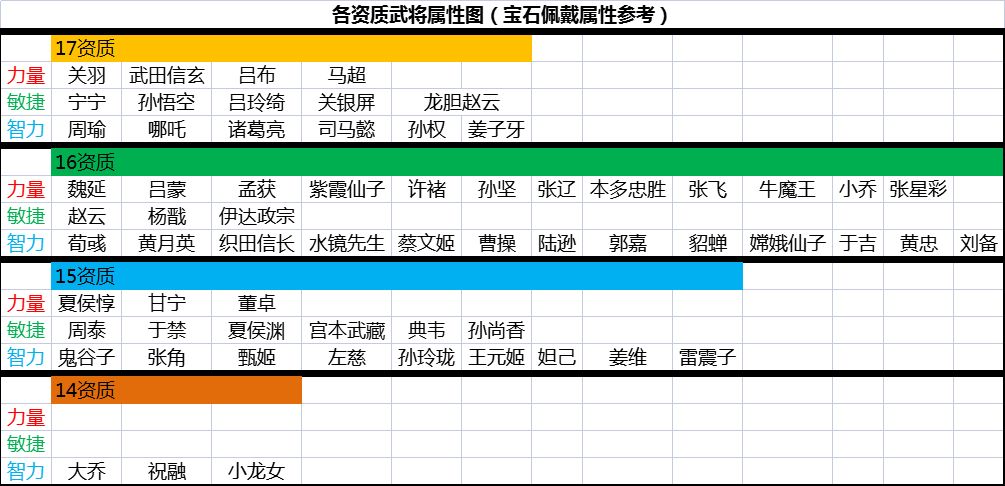 Q23:各资质武将属性图(宝石佩戴属性参考)?