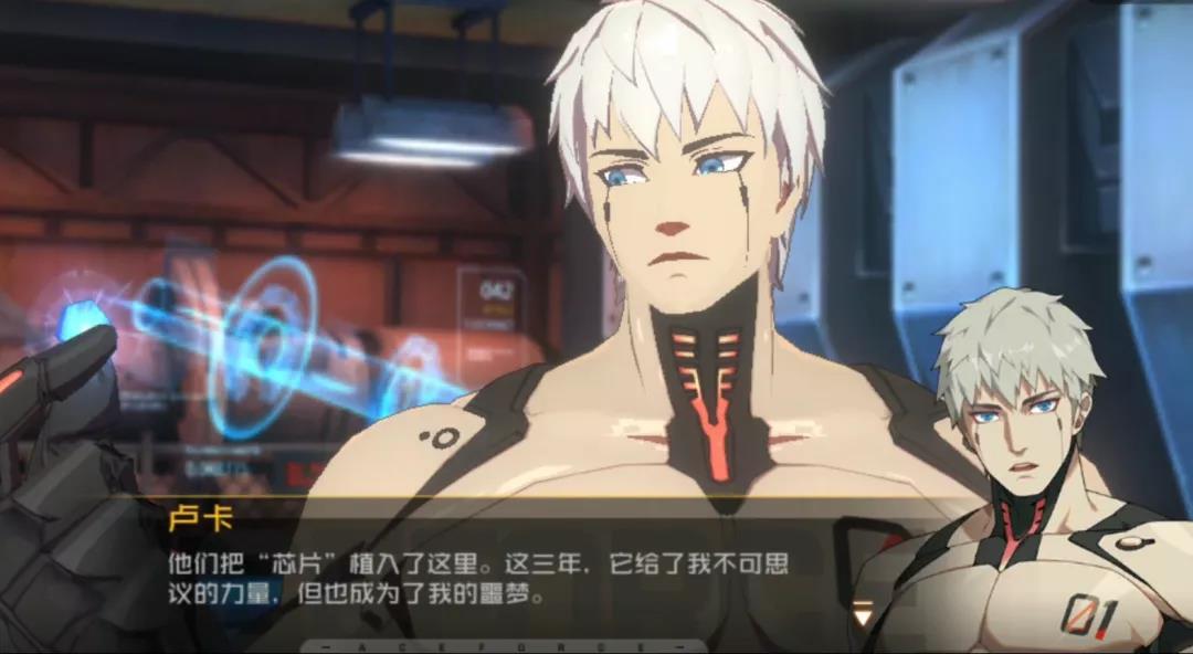 这时负责人的秘书出现了,她递上了一份新的候选人档案同时也颤抖于负责人的威胁,颤抖于这个壮硕得不像科研人员的负责人的威胁。秘书表示 这一次的评测是以年度测试为理由从体能、心理、忠诚度各个方面做了全面评估,其中这名来自终结区的战士的得分最为突出,这位名为卢卡的战士。