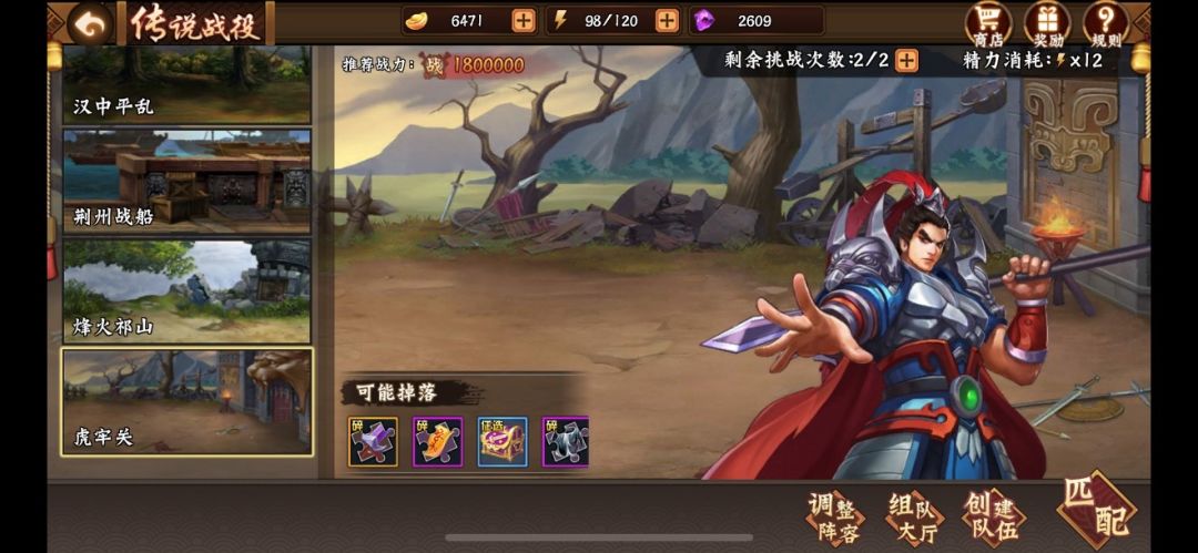 所有的传说战役官方都有一个推荐的战力值,而虎牢关之战的推荐战力值为180万,当然并不是说低于这个战力就没法进行挑战,只是说挑战的难度会略有提升,这里还是推荐大家超过200万战力再进行挑战,同时也可以邀请好友或者军团成员组队刷传说战役副本,比单刷来的快效率也高。
